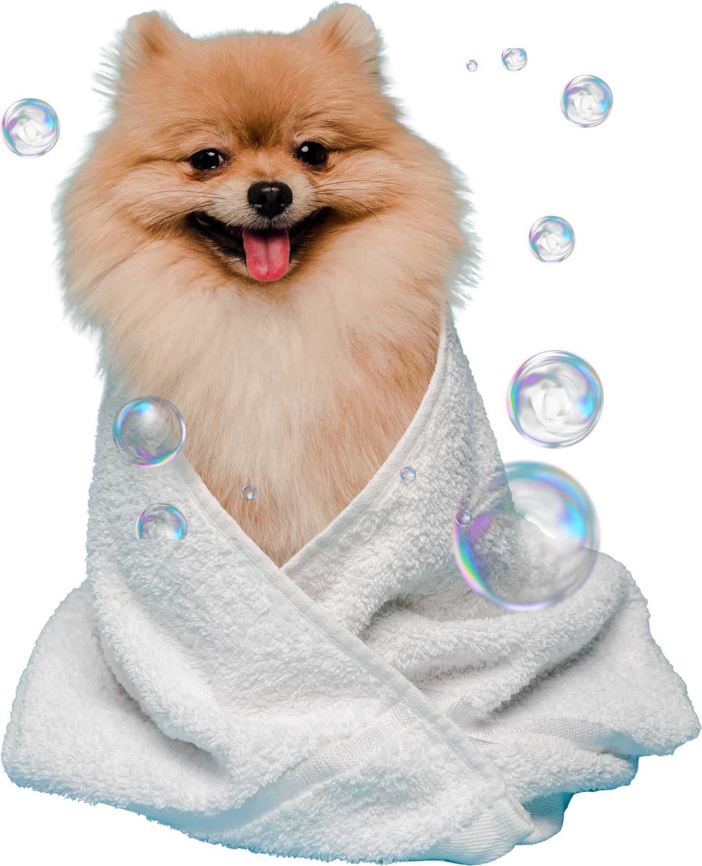 Waterproof apron, pet-safe shampoo, conditioner, 2-in-1 shampoo & conditioner, probiotic ear cleaner, brushes and combs, Furminator, professional dryers and blowers, clean towels, dog-friendly cologne. No hidden extras.